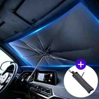 “차량 내부를 햇빛으로부터 보호해주는 오너백 여름 차량햇빛가리개 우산형, 블랙 컬러로 디자인된 제품입니다.”