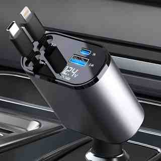 LUMANOKI 동시4대충전 릴타입 차량용 고속충전기 PT-SX16-2(애플+C타입)은 휴대하기 편리한 디자인과 다양한 기기 호환성을 갖춘 고속충전기입니다.